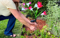 Déployez le panneau solaire de chaque FloralSun et mettez l'interrupteur sur la position ON. Fixez ensuite la FloralSun sur son piquet et plantez celui-ci dans le sol.